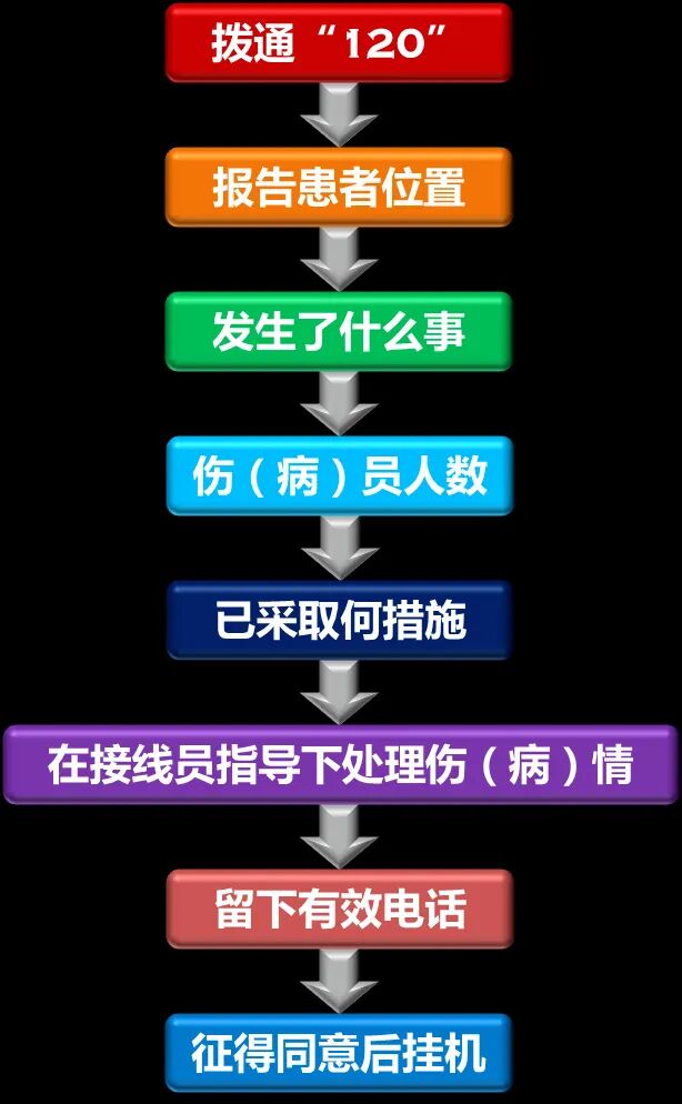 4.做到及时自救互救:在等待救护车到来的时间,现场人员在120调度员或医务人员指导下可采取简单的急救措施。