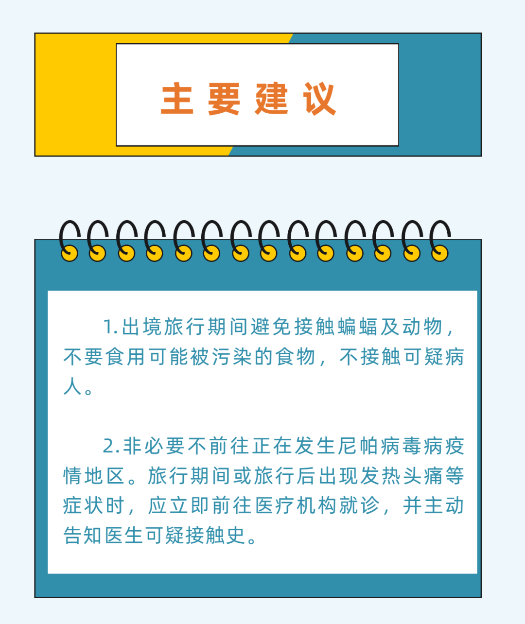 2月份春节假日期间人员流动与聚集、境内游、出境游将会明显增多。中国疾病预防控制中心温馨提示:2月份春节假期期间,需做好防寒保暖,需关注流行性感冒等其他急性呼吸道传染病、人感染禽流感、诺如病毒胃肠炎、食源性疾病和一氧化碳中毒等;出境旅行需关注目的地登革热、基孔肯雅热、寨卡病毒病等蚊媒传染病以及尼帕病毒病等疫情风险。