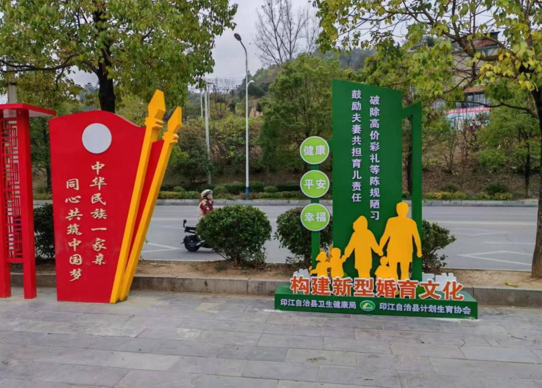 1月2日,印江县卫生健康局、县计生协在城区文昌广场、兴民社区打造的新型婚育文化广场建成并投入使用。