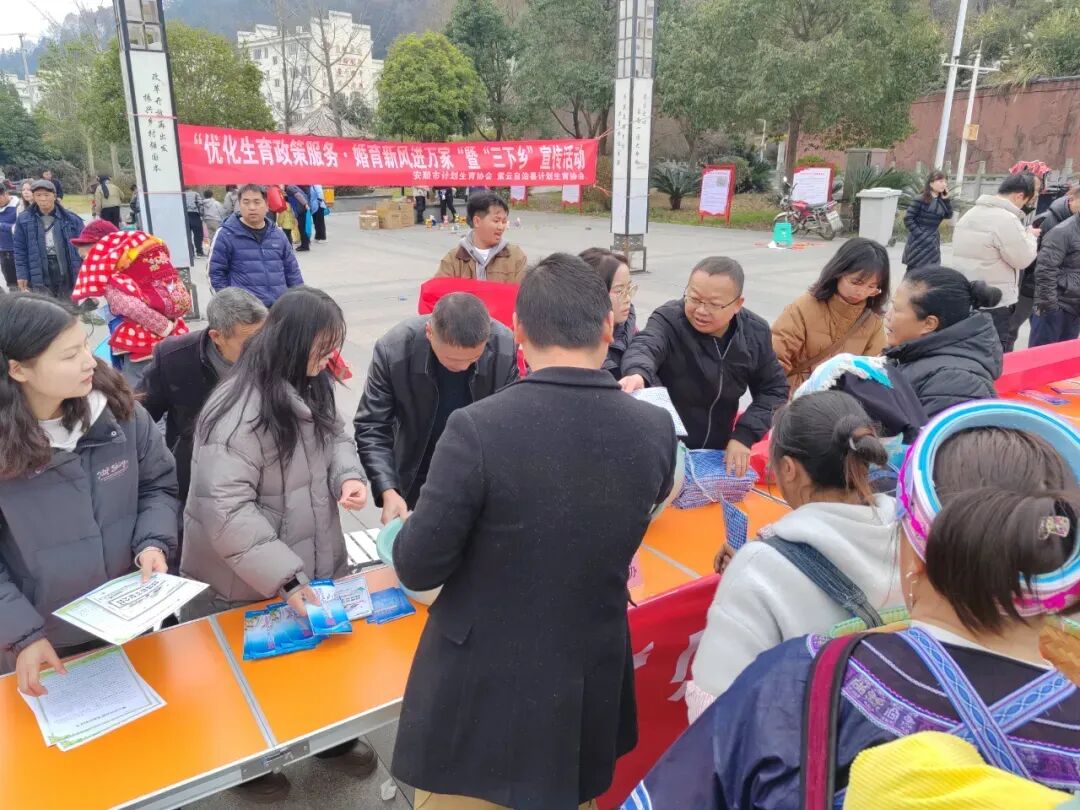 1月14日,安顺市计生协、紫云县计生协到格凸河镇羊场红色文化公园开展“优化生育政策服务 婚育新风进万家”宣传服务活动。
