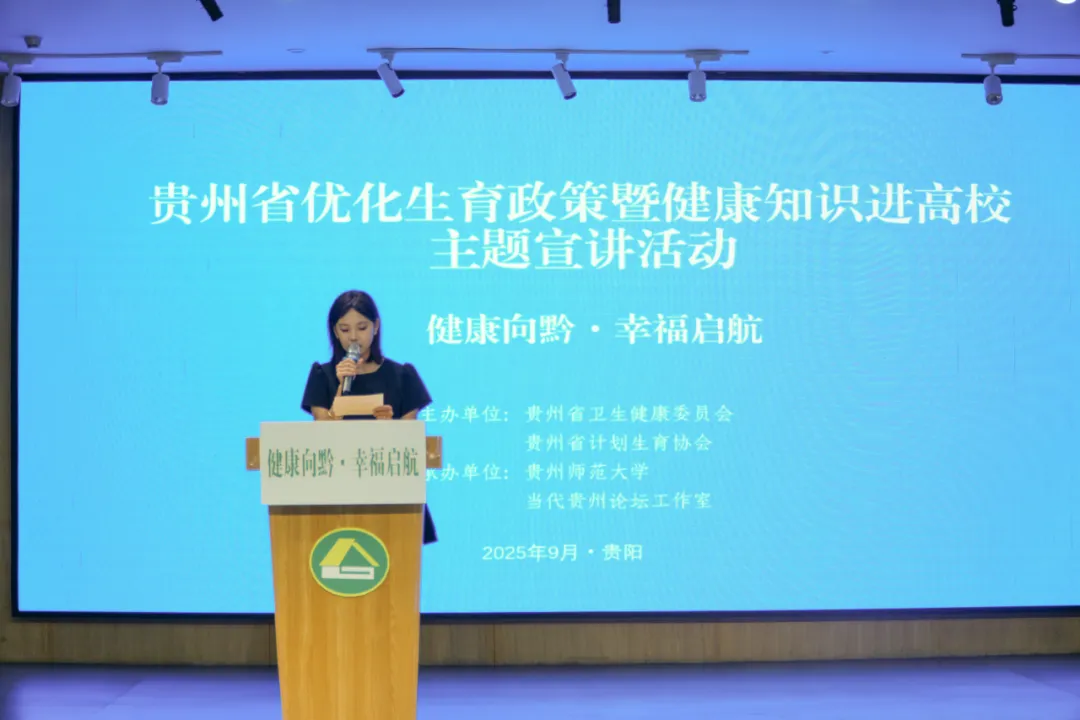 2025年9月24日至25日,由省卫生健康委、省计生协举办的“健康向黔·幸福启航”优化生育政策暨健康知识进高校主题宣讲活动先后走进贵州大学、贵州师范大学和贵阳学院。省计生协二级巡视员郁红、贵州大学党委副书记彭洁出席首场宣讲活动并讲话。来自贵州大学、贵州民族大学、省疾控中心、省妇幼保健院等单位的专家学者受邀为三所高校的700余名同学带来了内容丰富、形式多样的专题讲座。