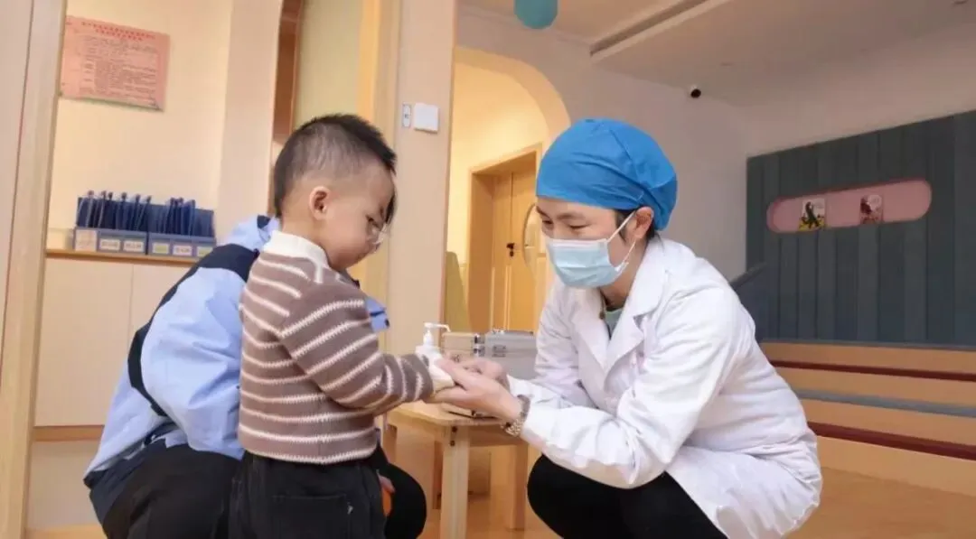 在麻江县妇幼保健院托育服务中心,儿科医生正细致地为孩子们进行晨检。