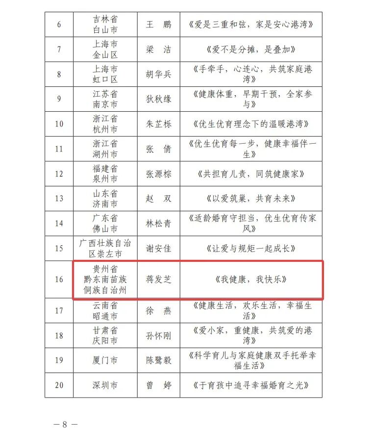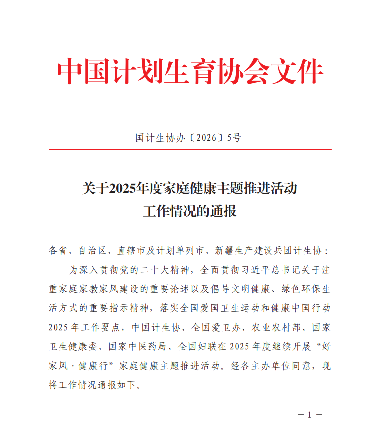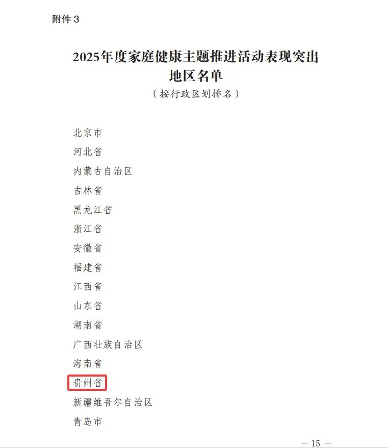 2月4日,中国计生协印发《关于2025年度家庭健康主题推进活动工作情况的通报》,贵州省获2025年度家庭健康主题推进活动表现突出地区表扬,4户家庭获“健康家庭”典型案例表扬,3件作品获“孕妈萌宝小鸟餐”优秀作品表扬。