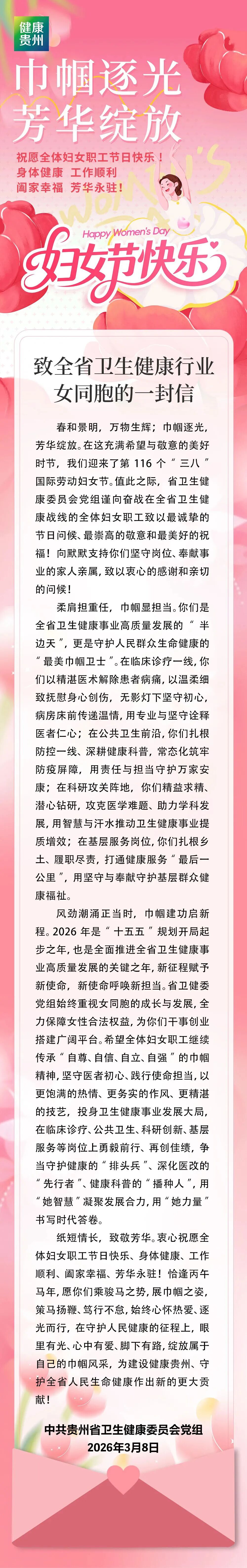 致全省卫生健康行业女同胞的一封信