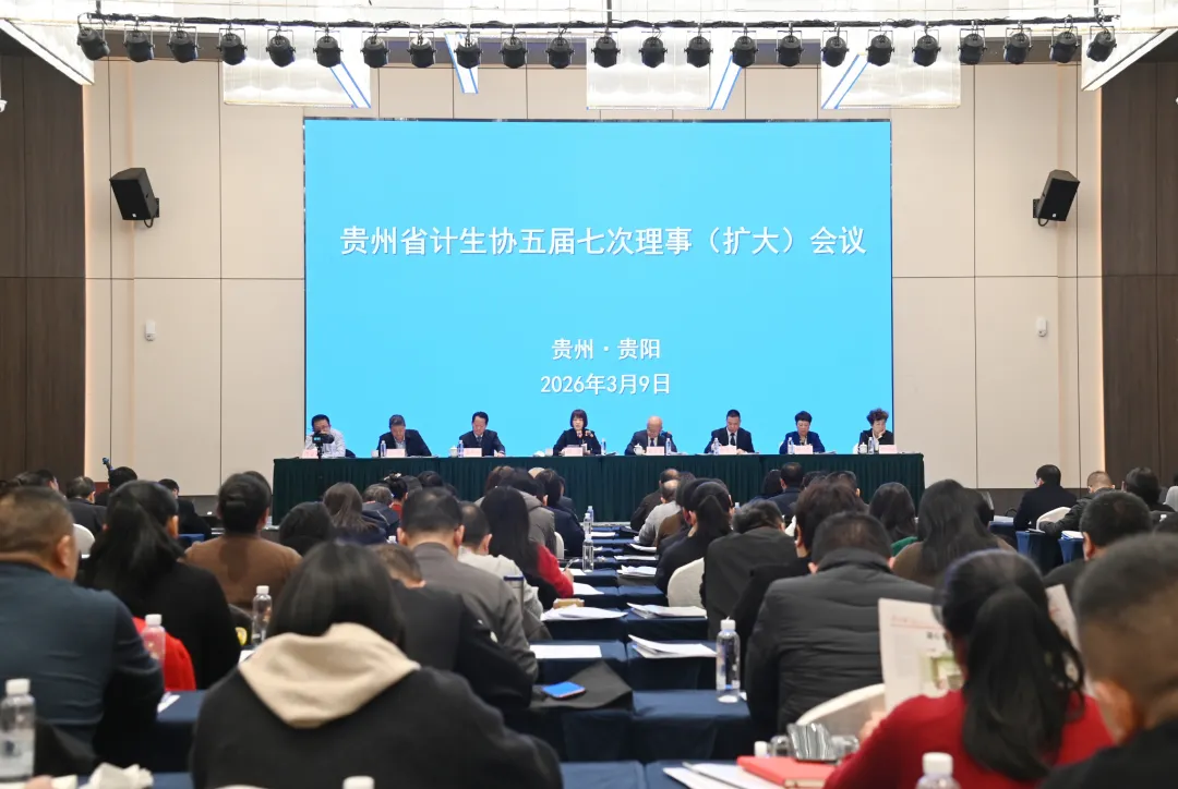 2026年3月9日,贵州省计生协五届七次理事(扩大)会议在贵阳召开。会议以习近平新时代中国特色社会主义思想为指导,深入学习贯彻党的二十大、二十届四中全会精神和习近平总书记在贵州考察时的重要讲话精神,全面贯彻落实省委十三届七次、八次全会、省两会精神和全国计生协工作会议、全省卫生健康工作会议要求,总结回顾2025年全省计生协工作,谋划未来五年发展思路,安排部署2026年重点任务。省卫生健康委党组书记、省计生协副会长谭诤出席会议并讲话。省卫生健康委党组成员、省计生协专职副会长石永忠主持会议并作工作报告。省政协人资环委副主任龚仲明,省计生协兼职副会长和副厅级以上领导出席会议。